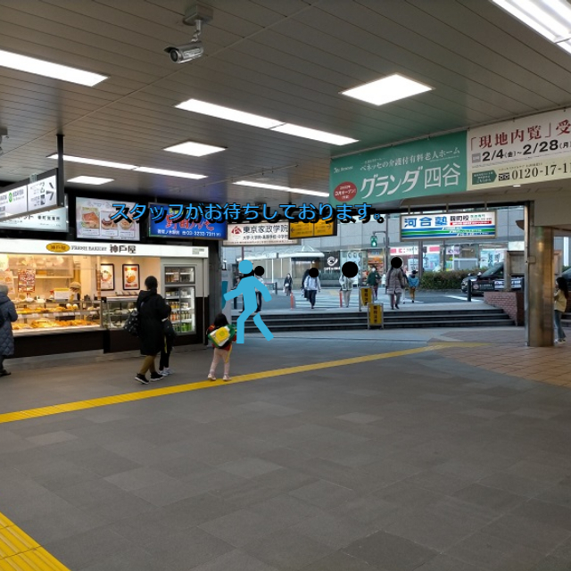 JR改札を出て正面のあたりスタッフがお待ちしております。